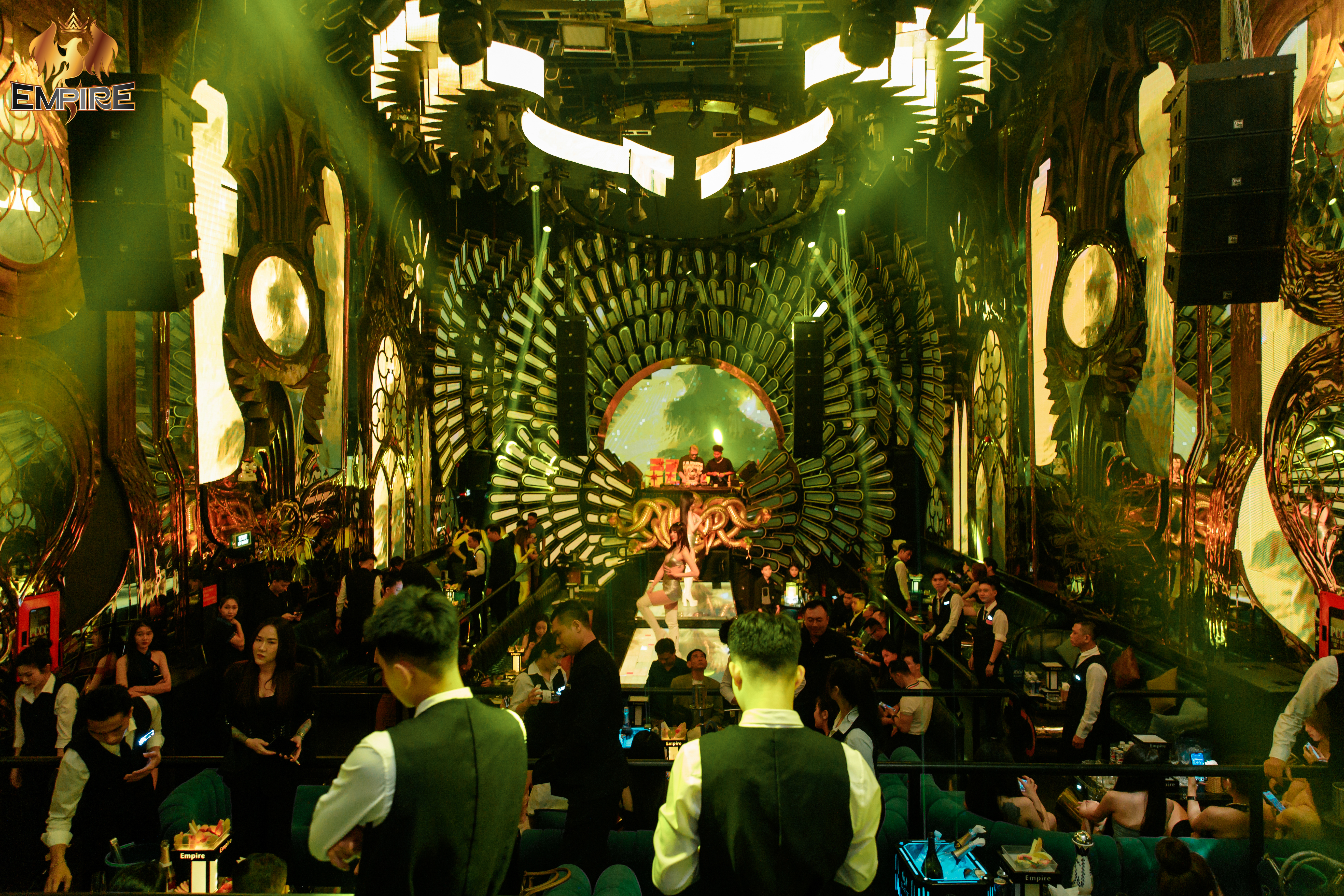 Empire Club, tọa lạc tại 08 Nguyễn Văn Tráng, Quận 1, là địa điểm lý tưởng cho những bữa tiệc âm nhạc đỉnh cao. Không gian tại đây được thiết kế hiện đại với hệ thống ánh sáng LED rực rỡ, kết hợp hiệu ứng laser ấn tượng, tạo nên một bầu không khí sôi động và cuốn hút. Mỗi góc nhỏ trong câu lạc bộ đều được chăm chút, mang đến trải nghiệm giải trí đẳng cấp cho khách tham dự.