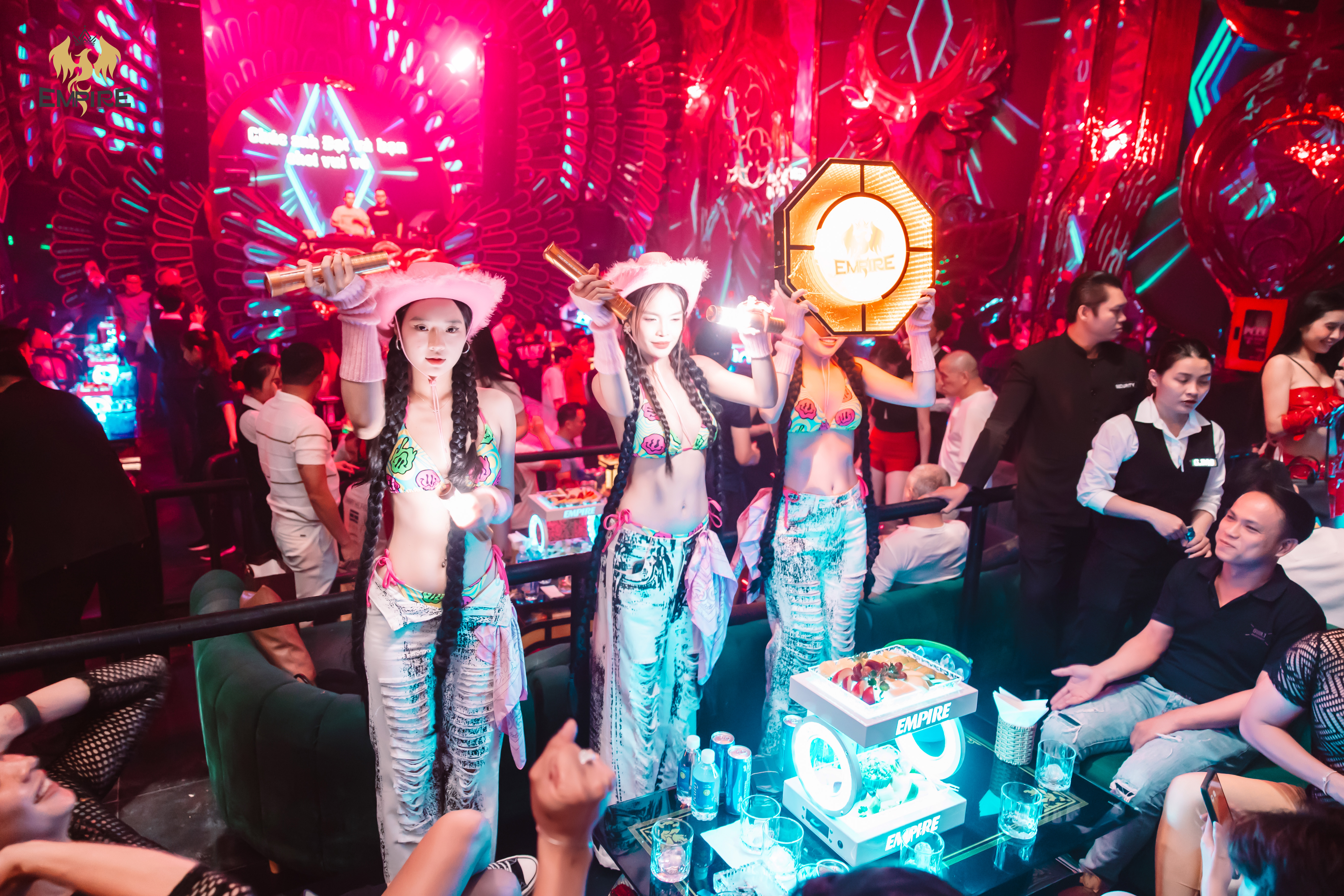 💡 Ánh sáng ảo diệu: Empire sử dụng hệ thống đèn LED neon đa tầng, chuyển động linh hoạt theo nhạc. Ánh sáng không chỉ để soi, mà để dẫn dắt cảm xúc. Bạn sẽ thấy mình như đang lạc vào một vũ trụ khác – nơi mỗi tia sáng đều kể một câu chuyện.